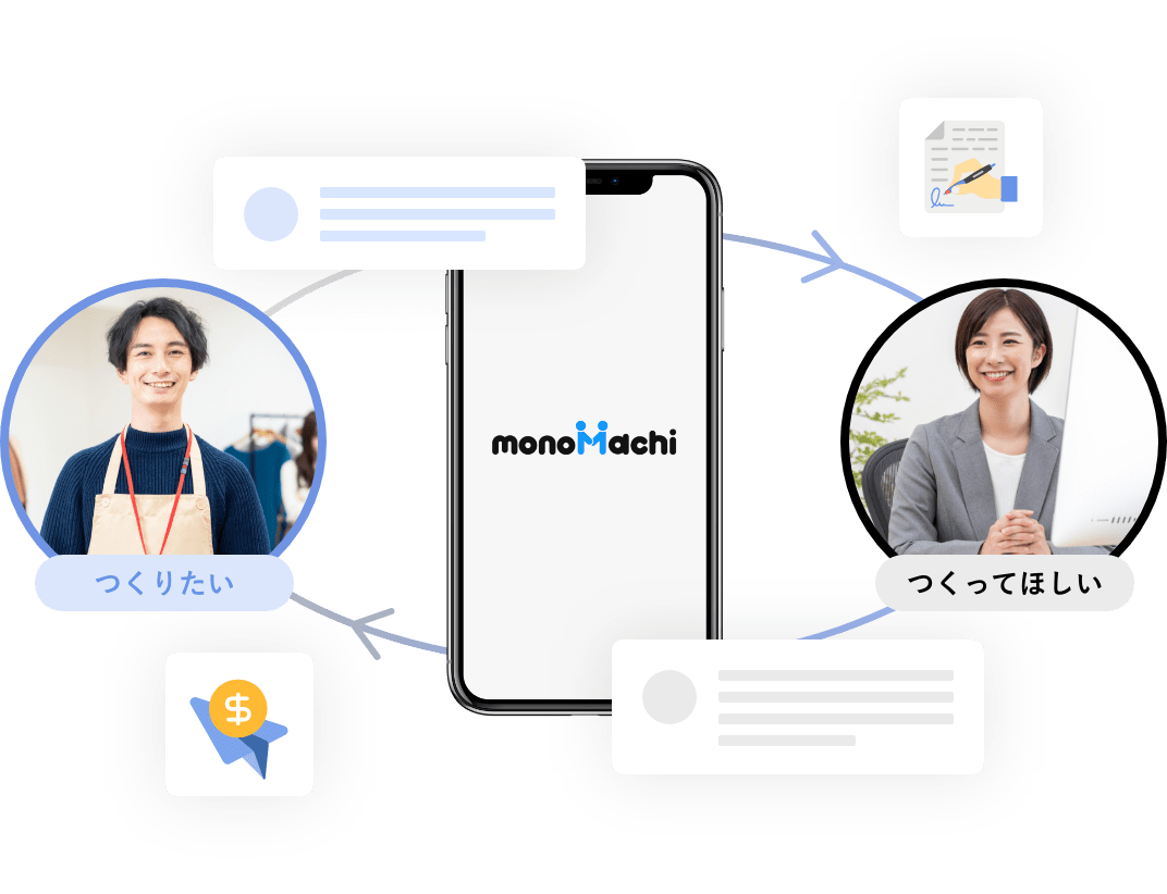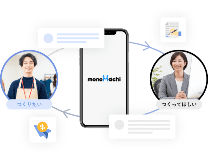 monoMachiはものを作りたい人(事業者等)とものを作れる人(製造者・工場・職人等)を結ぶマッチングサイトです。